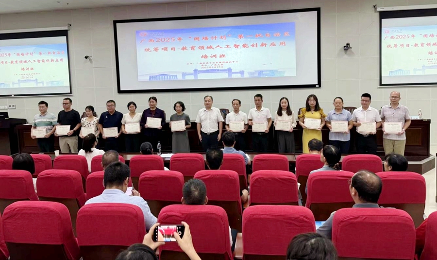 9月25日,广西2025年“国培计划”第一批自治区统筹项目——教育领域人工智能创新应用培训班在我校圆满结业,球速体育足球副院长徐华出席结业式并致辞,球速体育足球梁君华老师主持结业式。