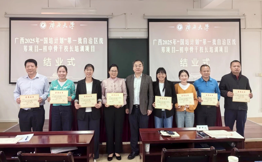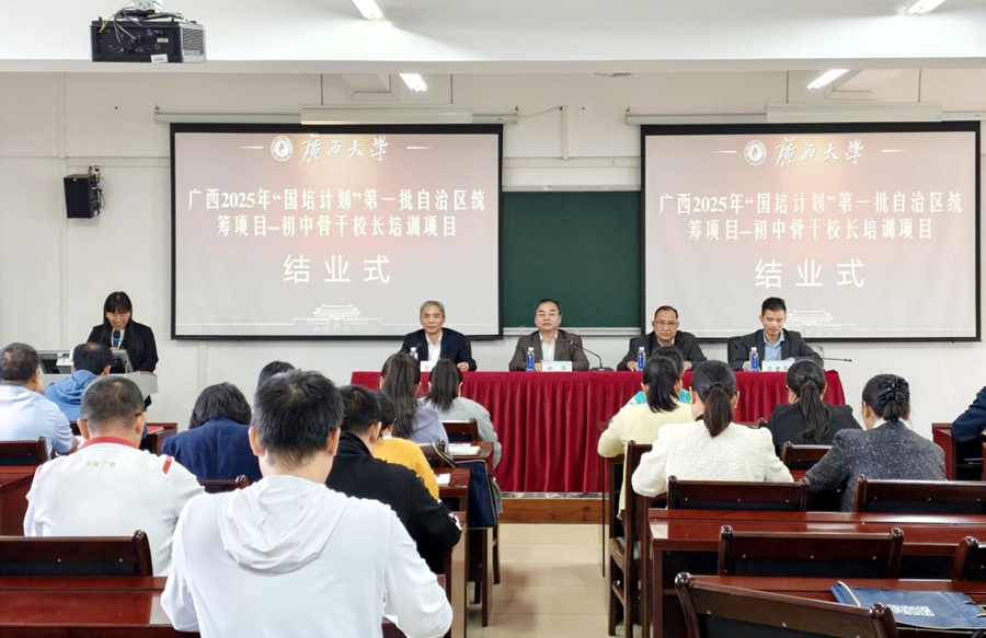 “国培计划”是落实《教育强国建设规划纲要(2024—2035年)》的重大实践。2025年10月24日,由广西壮族自治区教师培训中心主办,广西大学承办的2025年“国培计划”第一批自治区统筹项目——初中骨干校长培训班在我校结业。球速体育足球副院长徐华出席结业仪式并讲话。