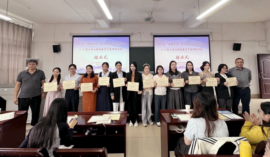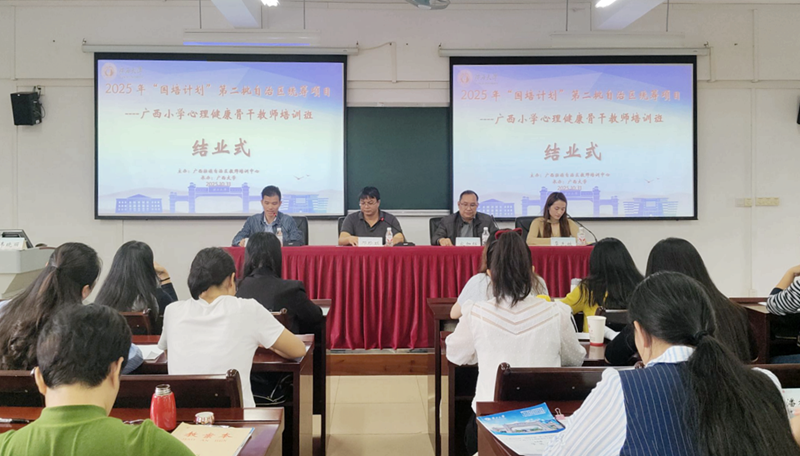 10月31日,由广西壮族自治区教师培训中心主办,广西大学承办的2025年“国培计划”第二批自治区统筹项目——广西小学心理健康骨干教师培训班在我校顺利结业,球速体育足球副院长邓珍琪出席结业式并致辞。