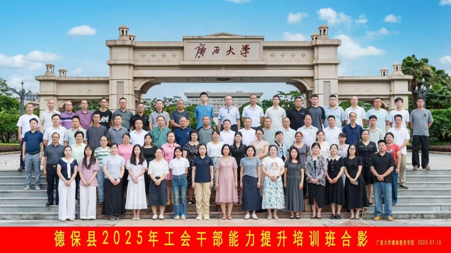 7月14日,德保县2025年工会干部能力提升培训班在我校开班,德保县总工会副主席莫善玲出席开班式并讲话。
